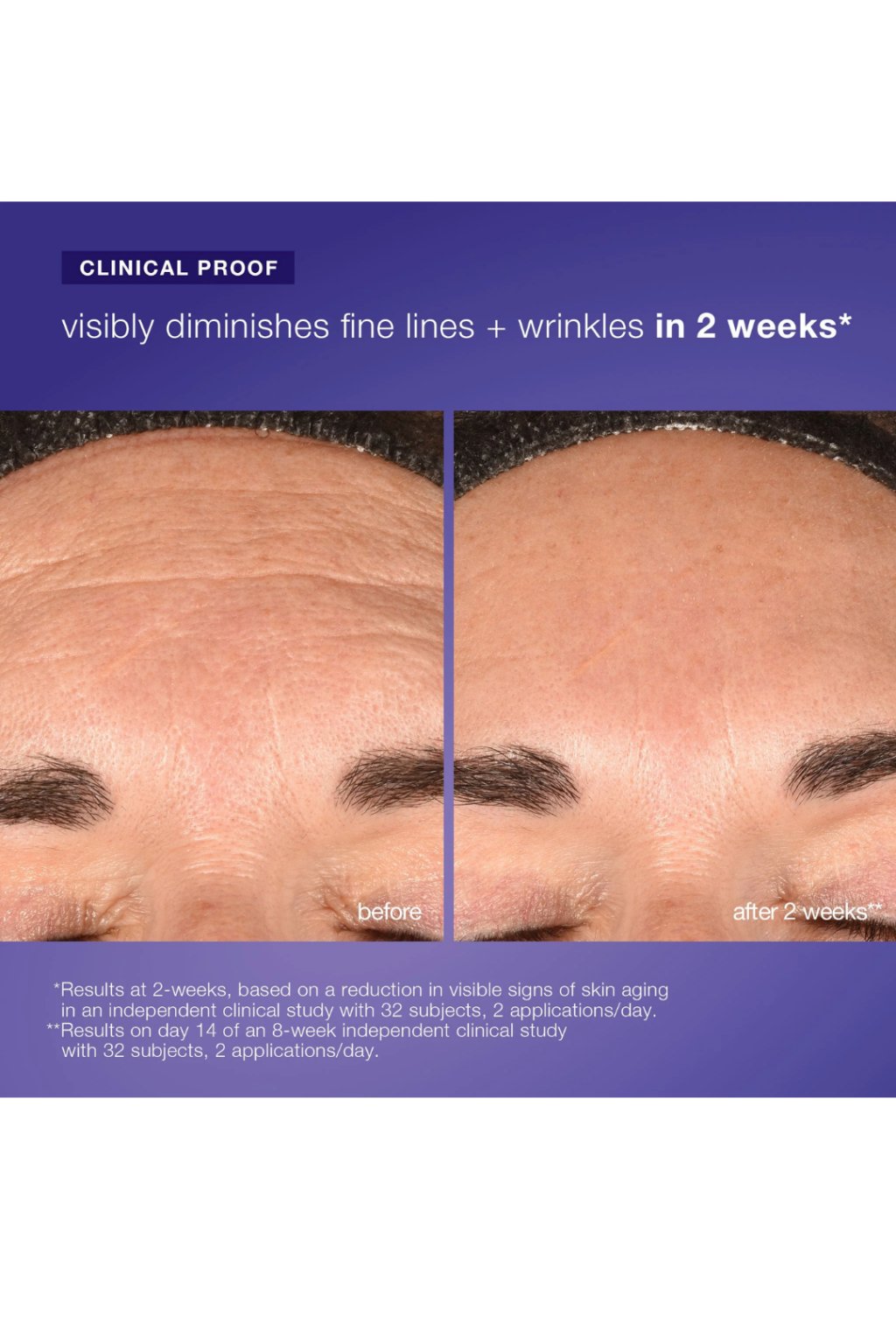 ** Výsledky po 2 týdnech, založené na snížení viditelných známek stárnutí pleti v nezávislé klinické studii s 32 účastníky, při aplikaci 2× denně.